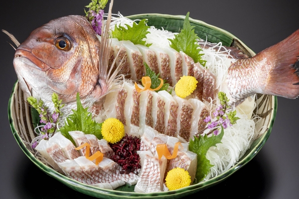 和歌山県を代表するブランド真鯛「紀州梅まだい」を姿造り・大ネタ握りにてご提供いたします。良質な脂が乗った白身、甘みが豊かな食感をお楽しみください。