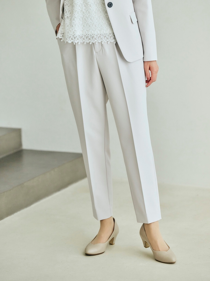 センタープレス入りできちんと感もあり、縦のラインが強調されることで脚がまっすぐきれいに見えるデザインです。