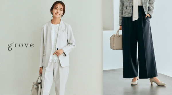全国のショッピングセンターを中心に、オフィスシーンからデイリーまで活躍するフェミニンカジュアルを展開するブランド「grove(グローブ)」は、幅広い女性に支持される着回し力の高いトレンドアイテムを多数ご提案しております。