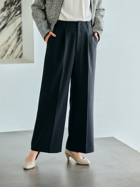 センタープレスできちんとした雰囲気を残しつつ、裾に向かって程よく広がるワイドパンツ。