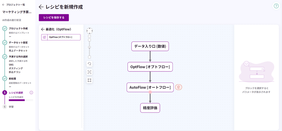 AIの設計図であるレシピは、OptFlowのブロック(と同時に出てくるAutoFlowのブロック)を繋ぐだけです。