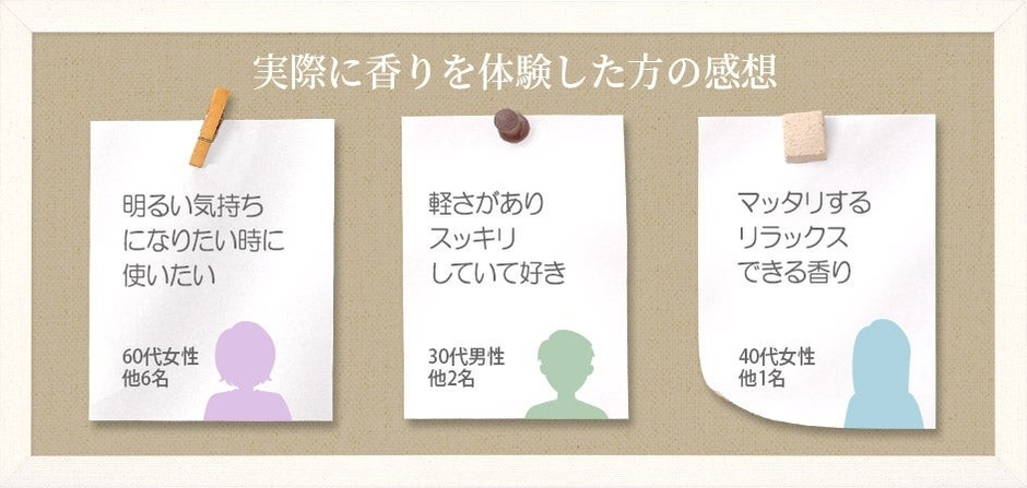 アロマディフューザーのタンク内の水100mLにつき、大人の花束ブレンドを2~3滴入れます。 サロン入口で香らせれば、優しい香りが広がりお客様の不安や緊張をホッとやわらげてくれます。