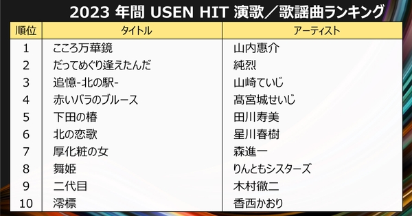 2023 年間 USEN HIT 演歌/歌謡曲ランキング