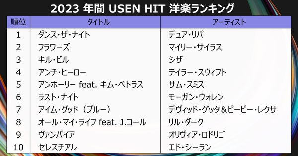 2023 年間 USEN HIT 洋楽ランキング