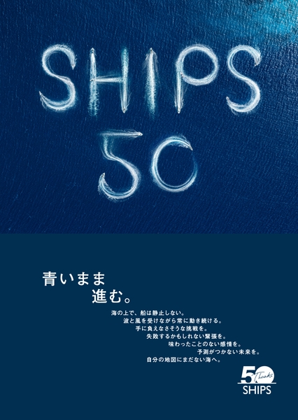 数多の船(シップス)が大海原を航海する姿を描き、その航跡で浮かび上がる「SHIPS 50」の文字には、これまでの軌跡と未来を切り拓いていく決意が込められています。この記念ビジュアルは、3月には全国の店舗装飾やさまざまな企画を通じて展開され、節目を彩る演出をしてまいります。