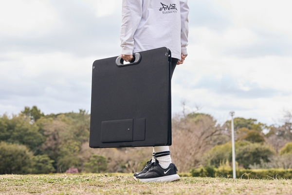PowerArQに付属のケーブルを繋ぐだけで即使用可能。4枚のパネルで構成された折りたたみ式で、畳んだときのサイズは615×523×55mm。幅を取らずに保管が可能。