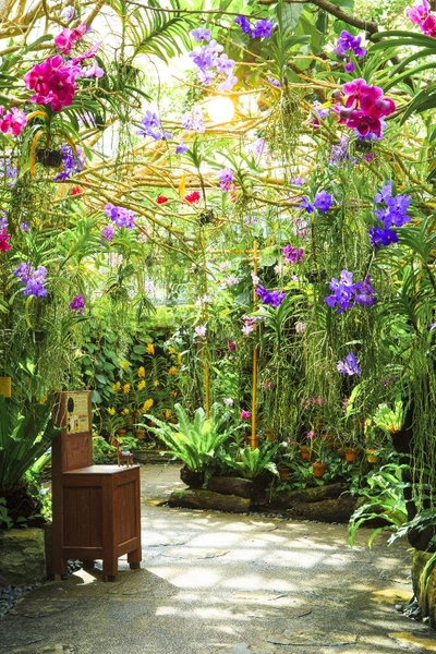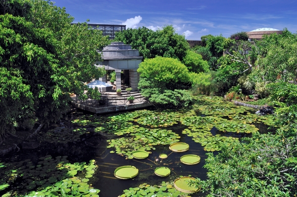 国営沖縄記念公園 熱帯ドリームセンター(沖縄県本部町)ではランの花を中心に、珍しい熱帯・亜熱帯性の植物を植栽・展示しています。熱帯樹林の中に突如現れた古代遺跡をイメージしており、施設全体でフォトジェニックな空間を演出しております。