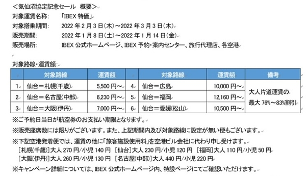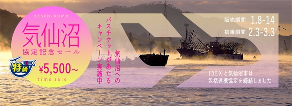 【IBEXエアラインズ】気仙沼協定記念TIME SALE&バスチケットプレゼントキャンペーン!