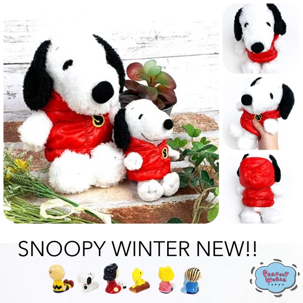ある寒い日のスヌーピーが2サイズで登場。スヌーピーも冬支度♪真っ赤なダウンベストがオシャレなぬいぐるみ&マスコット