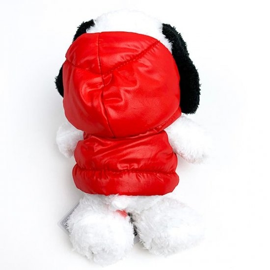 リアルなダウンジャケット姿の、スヌーピーのぬいぐるみです。スヌーピーって赤似合いますね!ドッグハウスも赤でしたし♪