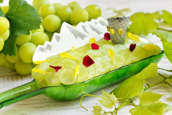 味覚の秋に食べたくなるフルーツと言えば、ぶどう。山梨県のぶどう栽培は、1,300年前から始まり、現在では日本一の栽培面積と生産量を誇ります(*)。そんな山梨県に位置するリゾナーレ八ヶ岳では、贈り物として人気のシャインマスカットに注目しました。シャインマスカットは、「ブドウ安芸津(あきつ)21号」と「白(はく)南(なん)」をかけ合わせ、2006年に品種登録された日本生まれの白ぶどうです。大振りで果汁たっぷり、種もなく果実を皮ごと食べられるシャインマスカットを贅沢に楽しんでいただきたいとの思いから、企画しました。