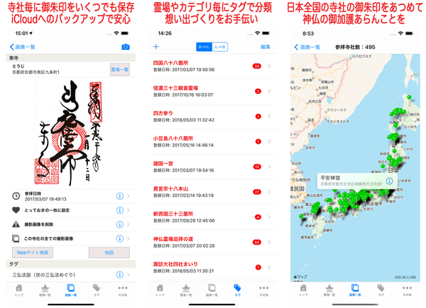 iOSアプリ「御朱印ノート」の特徴