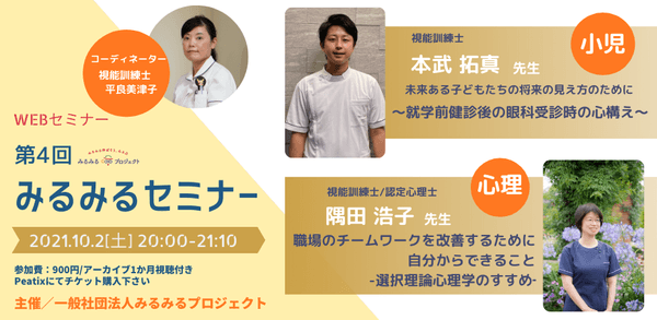 眼科医と共に子どもの眼を支える視能訓練士対象「みるみるセミナー」第4回を10月2日WEB開催します。