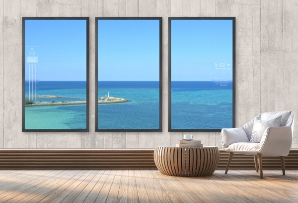 Atmoph Windowは、世界各地の個人の方から、店舗やオフィス、ホテルや医療施設など幅広いお客様にご購入いただいております。これまで、広いスペースでは3台を連携して一つの大きな風景が映る「パノラマ」機能をご利用いただいてきましたが、天井が高い空間ではそれでも十分ではなく、さらに大きな窓が欲しいというご要望が多くありました。そこで、Atmoph Windowの様々な機能はそのままに、大型サイズの4K液晶パネルが搭載されたAW501を発表しました。アトモフが独自に撮影してきた500本以上の4K動画がそのままのクオリティでお楽しみいただけ、より迫力のある臨場感を感じていただけます。また追加された新機能として、CO2センサーが搭載され、空気の質を常時モニタリングします。一目で空気の状態が把握でき、風景での癒しに加え実際の室内環境も知ることができるという、窓としての役割がより充実しました。