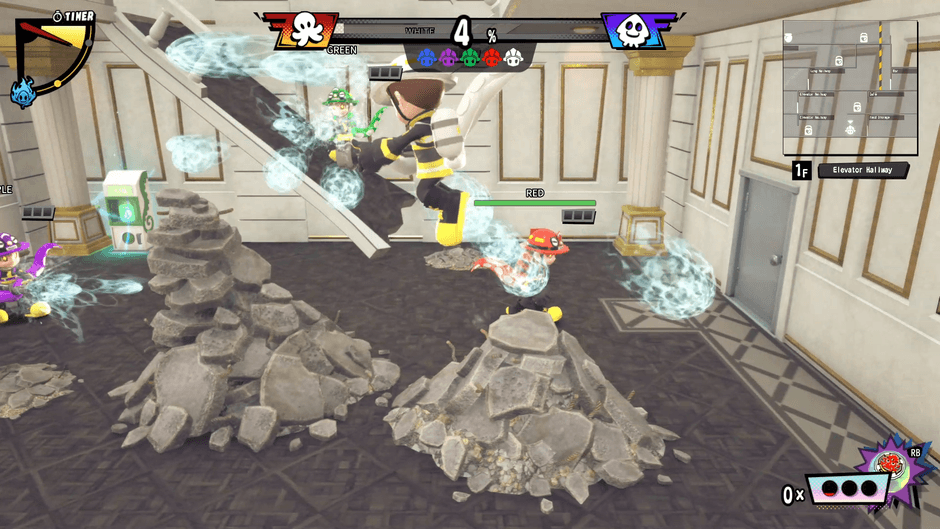 アーティストは消防士に化けて紛れ込んでいますが、自ら正体を現し、攻撃に転じることも!正体を現すまでに溜めたゲージ量(マップ内に火を付けることで蓄積)によって、より強力なアクションを行うことができます。