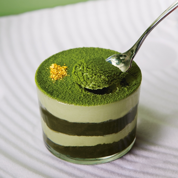 コクのあるマスカルポーネに香り高い抹茶を混ぜ合わせたクリームと、当店で提供するお抹茶の約5倍の抹茶を使った超濃厚な抹茶シロップが染み込んだスポンジを重ね合わせています。抹茶シロップにラム酒をふわっと香らせることで、上品な甘さと抹茶本来の旨みや苦みが引き立つ、お茶専門カフェならではの抹茶スイーツを愉しめます。