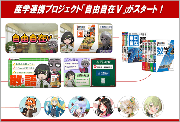 近畿大学総合社会学部(大阪府東大阪市)、株式会社増進堂・受験研究社(大阪府大阪市)、GAMABOOKS(東京都渋谷区)、株式会社CoNo(大阪府東大阪市)は、増進堂・受験研究社が出版する創刊70年のロングセラー学習参考書『自由自在』と「学術系VTuber」が連携し、学びや探究の楽しさを発信するメディアミックスの産学連携プロジェクト「自由自在V」を始動します。本プロジェクトでは、YouTubeチャンネル「自由自在V」やオープンキャンパス等のリアルイベントを通じて、小中高生から大学生、保護者や一般の人々まで、幅広い世代に「学びの楽しさ」や「探究の面白さ」を発信していきます。近畿大学総合社会学部教授 岡本健ゼミの学生18人が参加し、番組、イベントの企画、動画編集やYouTubeの運営に至るまでプロデュースの全体を担い、実践的な共同研究を通じて、情報社会で求められる汎用的スキルの育成にも取り組みます。