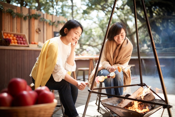 熱海の絶景と温泉に浸るリゾートホテル「星野リゾート リゾナーレ熱海」では、2020年11月1日〜30日の期間、開放的な空間で旬のフルーツを味わうプログラム「フルーツバーベキュー」を開催します。ホテル敷地内にある森「森の空中基地 くすくす」にて、たき火で焼いたフルーツを味わうプログラムです。また、夜はライトアップされ、幻想的な空間でフルーツバーベキューを楽しむことができます。