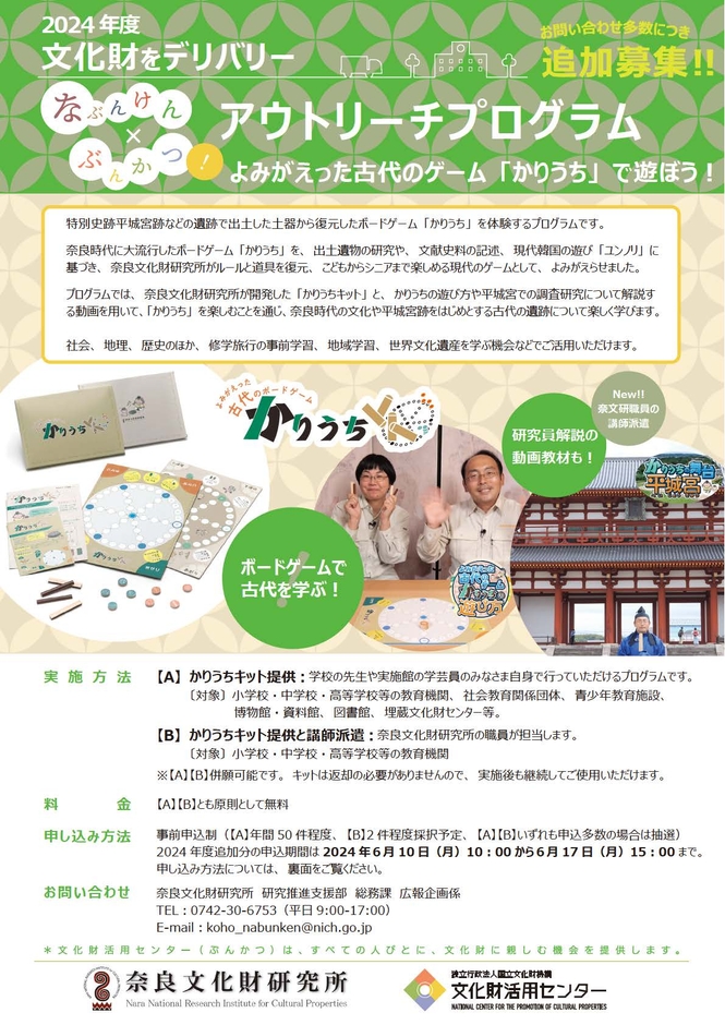 「奈良時代を体験!!よみがえった古代のゲーム「かりうち」で遊ぼう!」追加募集のちらしを公開します。