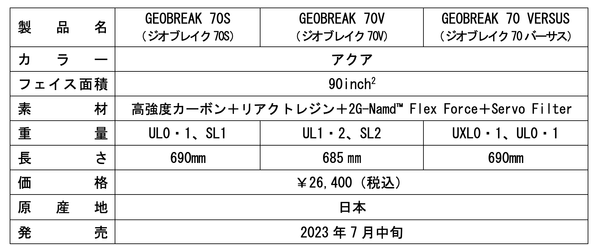人気シリーズがさらに進化!新次元パワーショットを実現 ソフトテニスラケット新「GEOBREAK(ジオブレイク)70VERSUS、70S、70V」 2023年7月中旬より発売