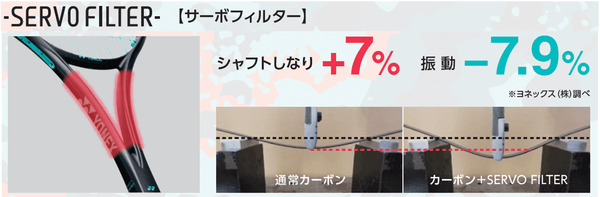 さらに、シャフト部には高い振動減衰性と柔軟性を併せ持つ新素材「サーボフィルター」を搭載することにより、しなりを向上しつつ雑振動を削減し、クリアで柔らかい打球感を実現します。