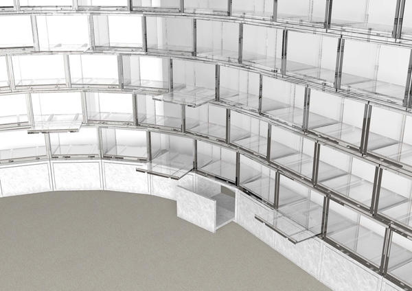 図書館や博物館の保管庫の一部はスペースの有効利用のために左右スライド方式を採用する