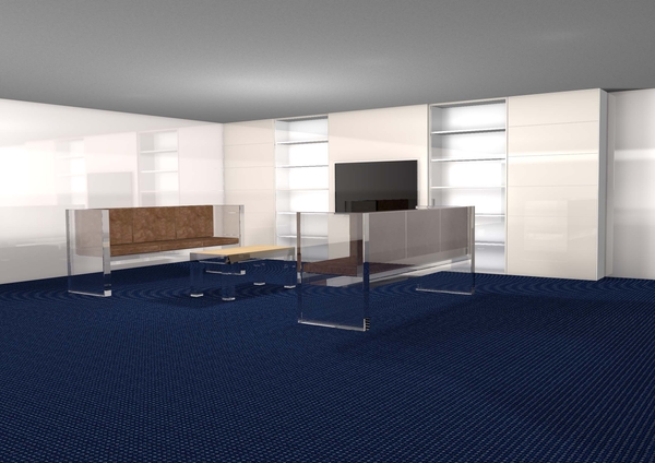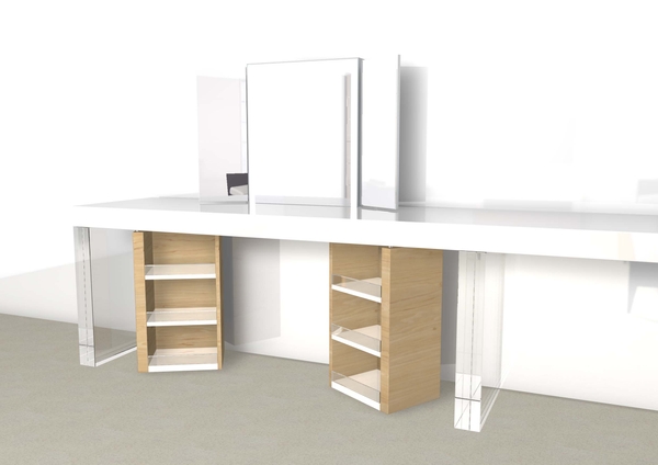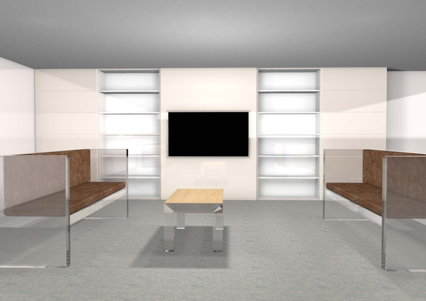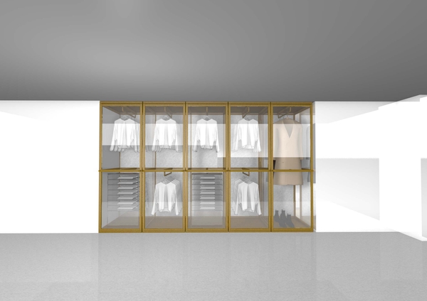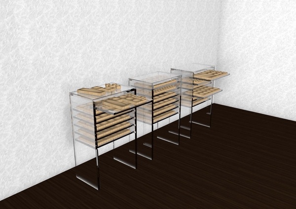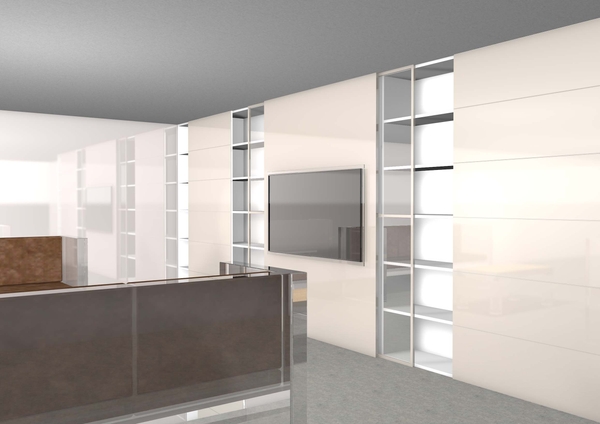 その際に開発した壁面大型展示ケースの大型ガラスの開閉方法をインテリアに転用