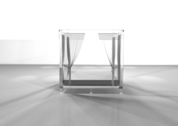 モデュロールな造形と浮遊感のある透明アクリル素材の融合は、幻想的で偉大な存在感を静かに主張する