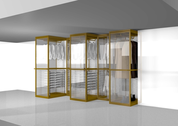 クローゼットの正面をガラスにすることで、お気に入りのドレスがディスプレイに、季節感を添えて