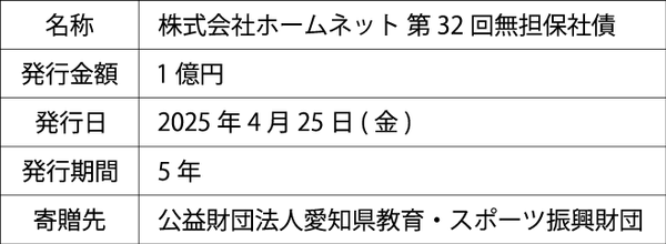 テクノロジーで気軽な住み替えをサポートする株式会社property technologies(以下「当社」)のグループ会社である株式会社ホームネット(以下「ホームネット」)は、株式会社あいち銀行(以下「あいち銀行」)を引受先とする、あいぎんSDGs私募債「あすなろ」を発行し、発行手数料の一部を公益財団法人愛知県教育・スポーツ振興財団へ寄付いたしました。