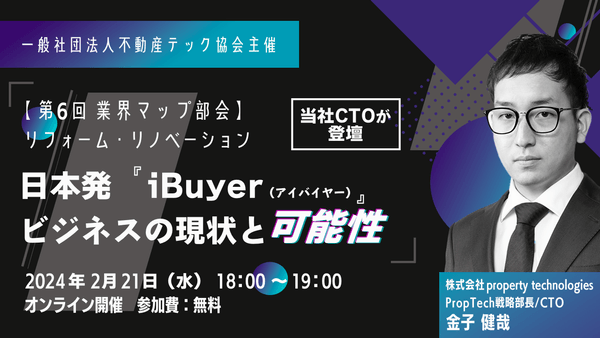 テクノロジーで気軽な住み替えをサポートする株式会社property technologies(以下「当社」)のPropTech戦略部長/CTO 金子 健哉が、2024年2月21日(水)に開催される一般社団法人不動産テック協会(以下「不動産テック協会」)主催のイベント『第6回業界マップ部会』に登壇します。