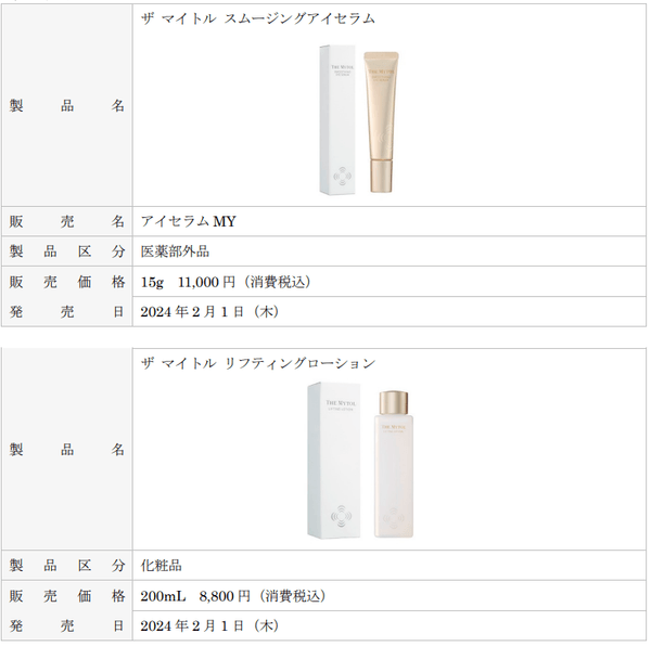 シワを改善する目もと用美容液『ザ マイトル スムージングアイセラム』& もっちり弾むようなハリ肌に導く化粧水『ザ マイトル リフティングローション』