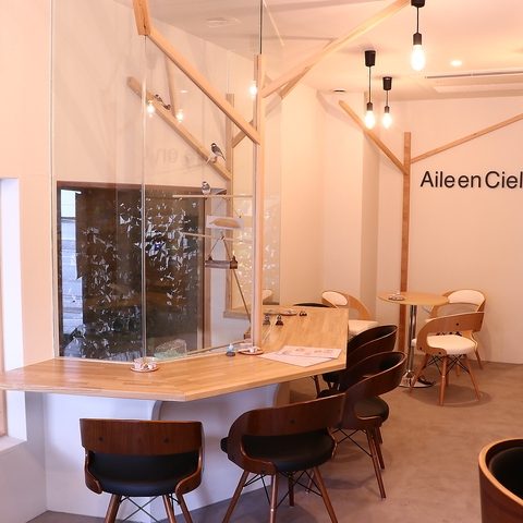 『Aile en Ciel』は白とウッドを中心とした、ナチュラルでお洒落な内装でも話題のお店です。