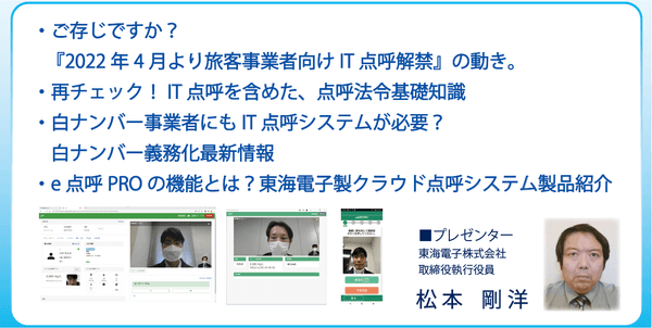 『2022年4月より旅客事業者向けIT点呼解禁』の動きがある今こそ役立つセミナーです!