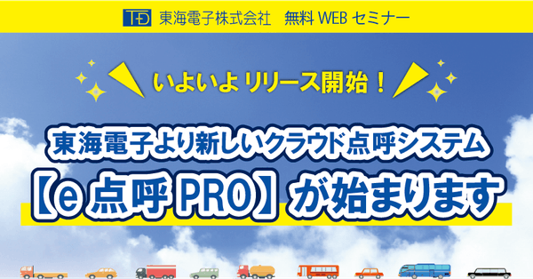 【いよいよリリース開始!】『東海電子の新しいクラウド点呼システム【e点呼PRO】始まりますセミナー』12月17日(金)、23日(木) 開催のお知らせ