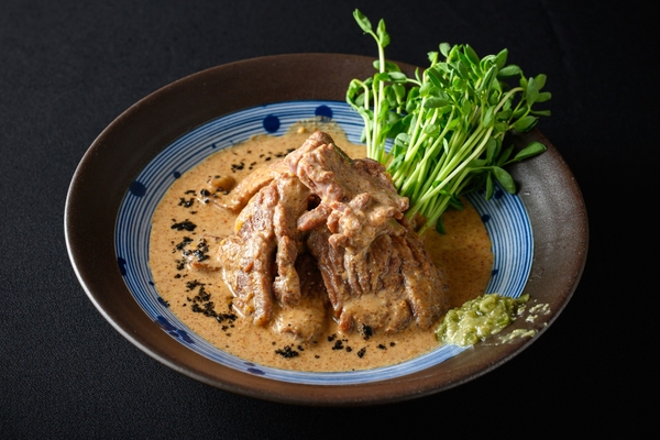 味噌味煮込み料理の特徴に引き継ぐ「牛ハラミのゆず胡麻煮込み 茎わさび添え」 「博多もつ鍋 やま中」銀座店で限定販売へ