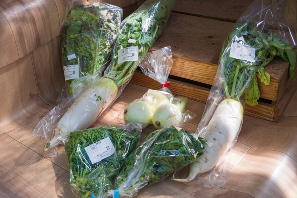 中里地区観光案内所を運営する(一社)夢・日立中里では、採れたての新鮮な野菜などを販売しています。9~12月ごろには、地域の特産品であるりんご等の果物が並びます。旬の野菜や果物は、午前中には売り切れになってしまうことも…