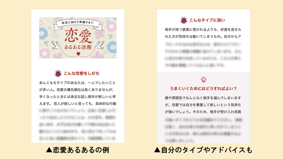 omochi初の恋愛診断を自己理解の入り口に。今回、実装する『恋愛あるある診断』は、全国の大学生計約900人のデータをもとに作成