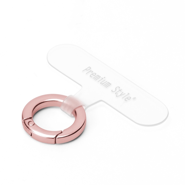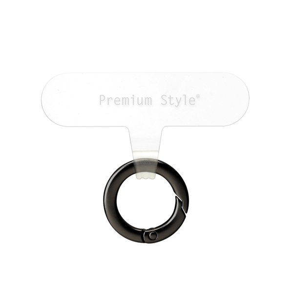 カラビナリング付きで様々なストラップの取り付けが可能です。端末やケースに貼り付けしないので、汚れずいつでも付け外しが可能です。(耐荷重:3kg)