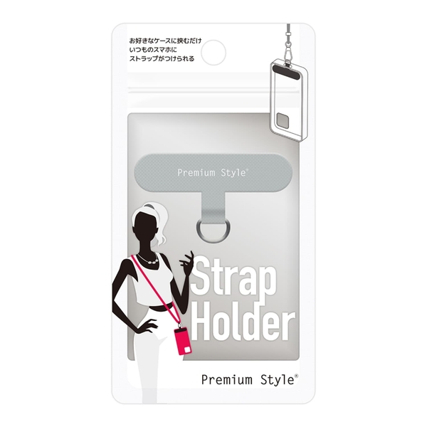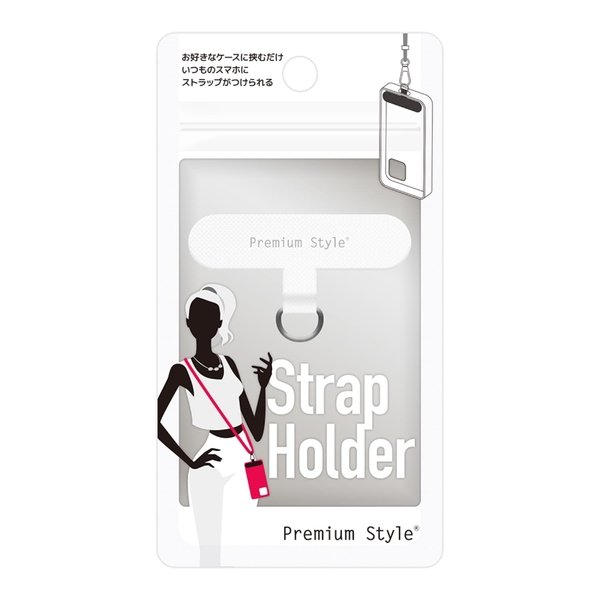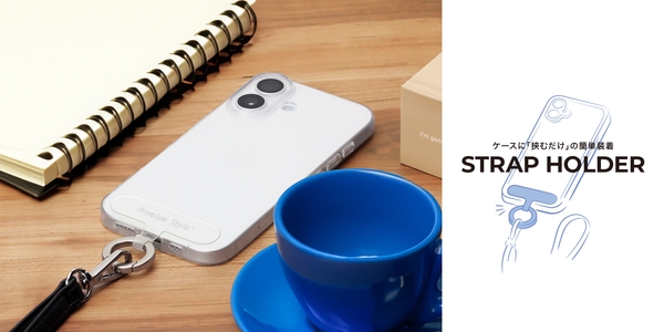ストラップホールのないケースに挟むだけでストラップが付けられるストラップホルダーです。