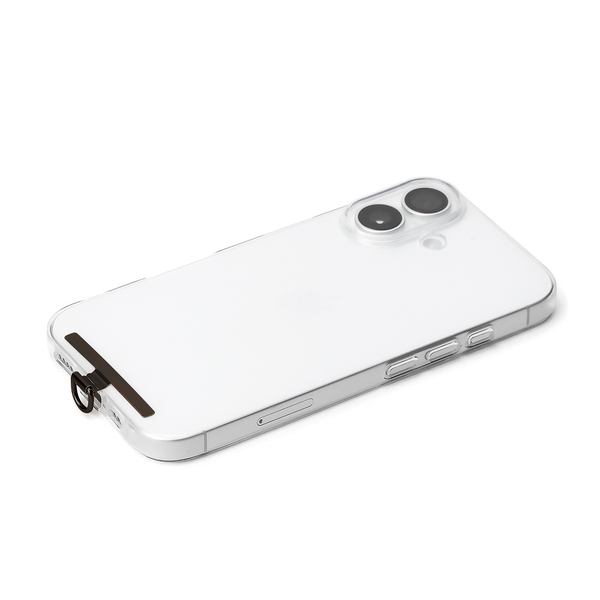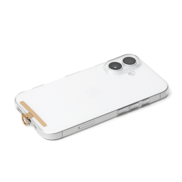 端末とケースの間にストラップホルダーを挟み込むだけで、ストラップホールを付加します。