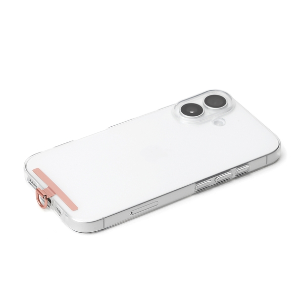 端末とケースの間にストラップホルダーを挟み込むだけで、ストラップホールを付加します。(※お手持ちのケースや充電口の形状によってはホルダーが収まらない場合があります。)