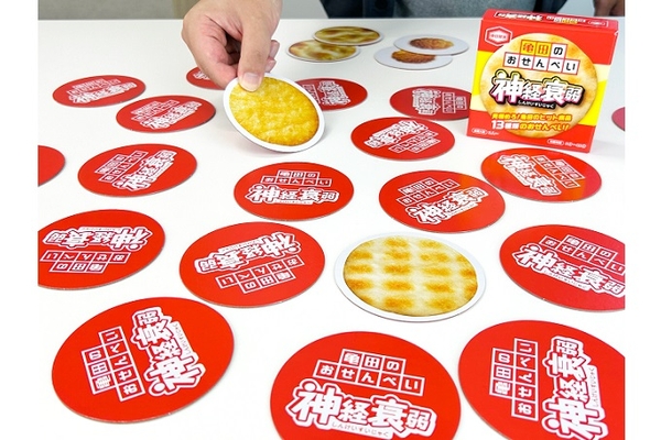 亀田製菓株式会社(本社:新潟県新潟市、代表取締役社長 COO:髙木 政紀)は、亀田製菓のヒット商品を絵柄に使用したオリジナルカードゲーム『亀田のおせんべい神経衰弱』を7月26日(金)より、東京おかしランドにある亀田製菓のアンテナショップ カメダセイカおよび公式通販ショップ 通販いちばにて発売します。亀田製菓公式SNSで投稿した画像が大きな反響を呼び、商品化を望む声が多く寄せられたため、家族や友人と過ごす時間が増える夏休みに合わせて商品化が実現しました。