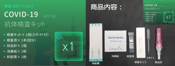 ※本検査キットはCE認証を取得しており、欧米では個人での自己使用や医療機関等で体外診断用医薬品として使用されていますが、日本国内においては診断目的でのご使用はしないでください。現在当社は本抗体検査キットの日本国内での体外診断用医薬品の許認可取得準備を行っております。