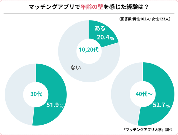 ・マッチングアプリ利用時に「年齢の壁」を感じた割合(年代別)