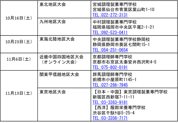 ・出場者 :地区大会通過者計42人(日本料理部門17人、西洋料理部門17人、中国料理部門8人)※予定