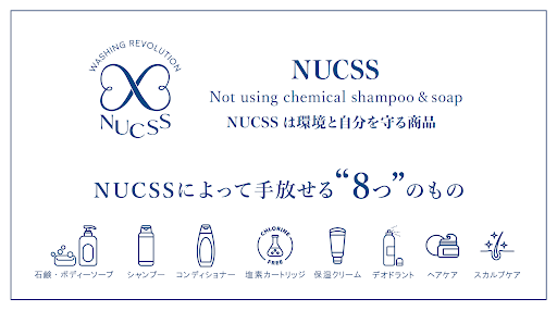 NUCSSは身体を健やかにするだけではなく、本来のバリア機能を守り、過度な洗浄を抑制することで、下記のアイテムを手放すことが出来ます。石鹸・ボディソープ、シャンプー、コンディショナー、塩素カートリッジ、保湿クリーム、デオドラント、ヘアケア、スカルプケア