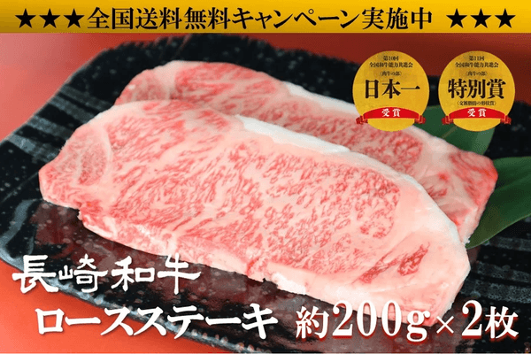 〇 【送料無料】 長崎和牛 ロースステーキ200g×2枚