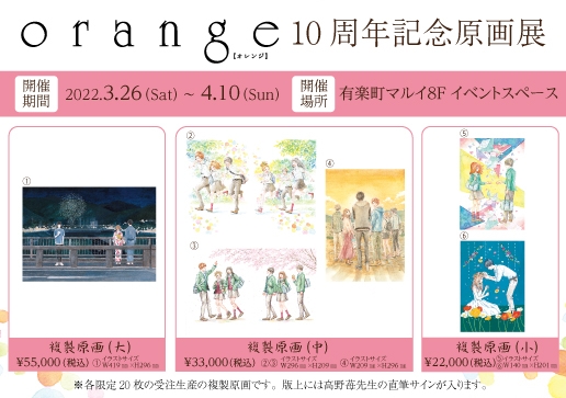 大ヒットコミックス『orange』の連載10周年と最新刊発売を記念し、原画展を実施いたします!