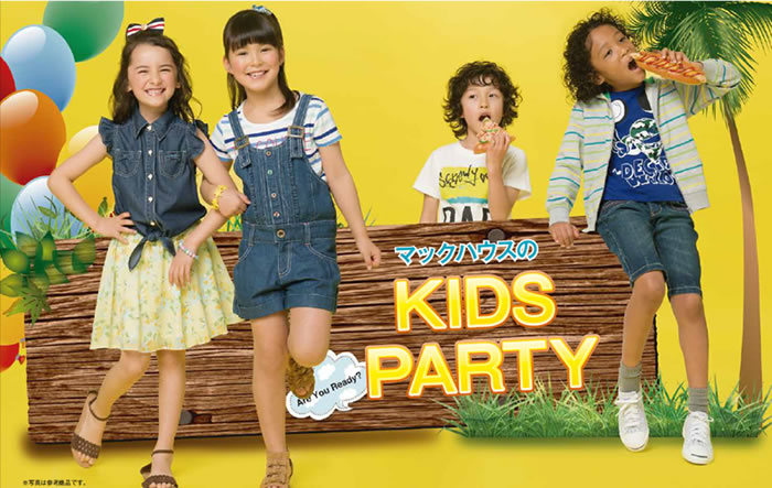 2016年4月6日 11:00 この度、株式会社マックハウス(本社:東京都杉並区/代表取締役社長:白土 孝)は、「KIDS PARTY」と題し、これからのシーズンに必要なキッズアイテムを厳選し、期間限定セールを開催いたします。